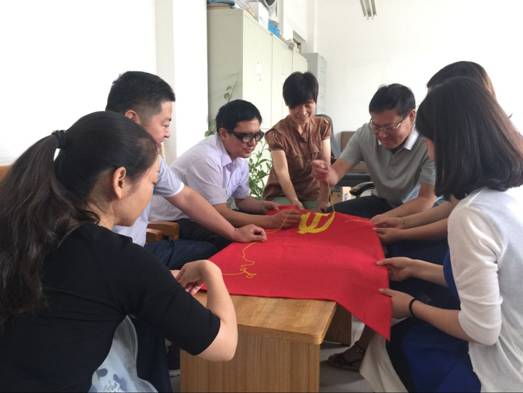 在建党96周年到来之际,医疗卫生系教工党支部利用5月份党日活动时间,组织全体党员干部开展“绣党旗”主题活动。活动现场,医疗卫生系党总支书记李云峰、系主任康运河和我系全体党员同志拿起了绣花针,穿针引线,绣出了对党的一片深情和无限忠诚。