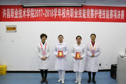 许昌职业技术学院2017-2018学年职业技能竞赛暨第四届护理技能竞赛决赛于2017年12月26日在我校健康服务技能训练&创客中心圆满落幕,达到了“以赛促教、以赛促学、以赛促技能提升”的预期目的。