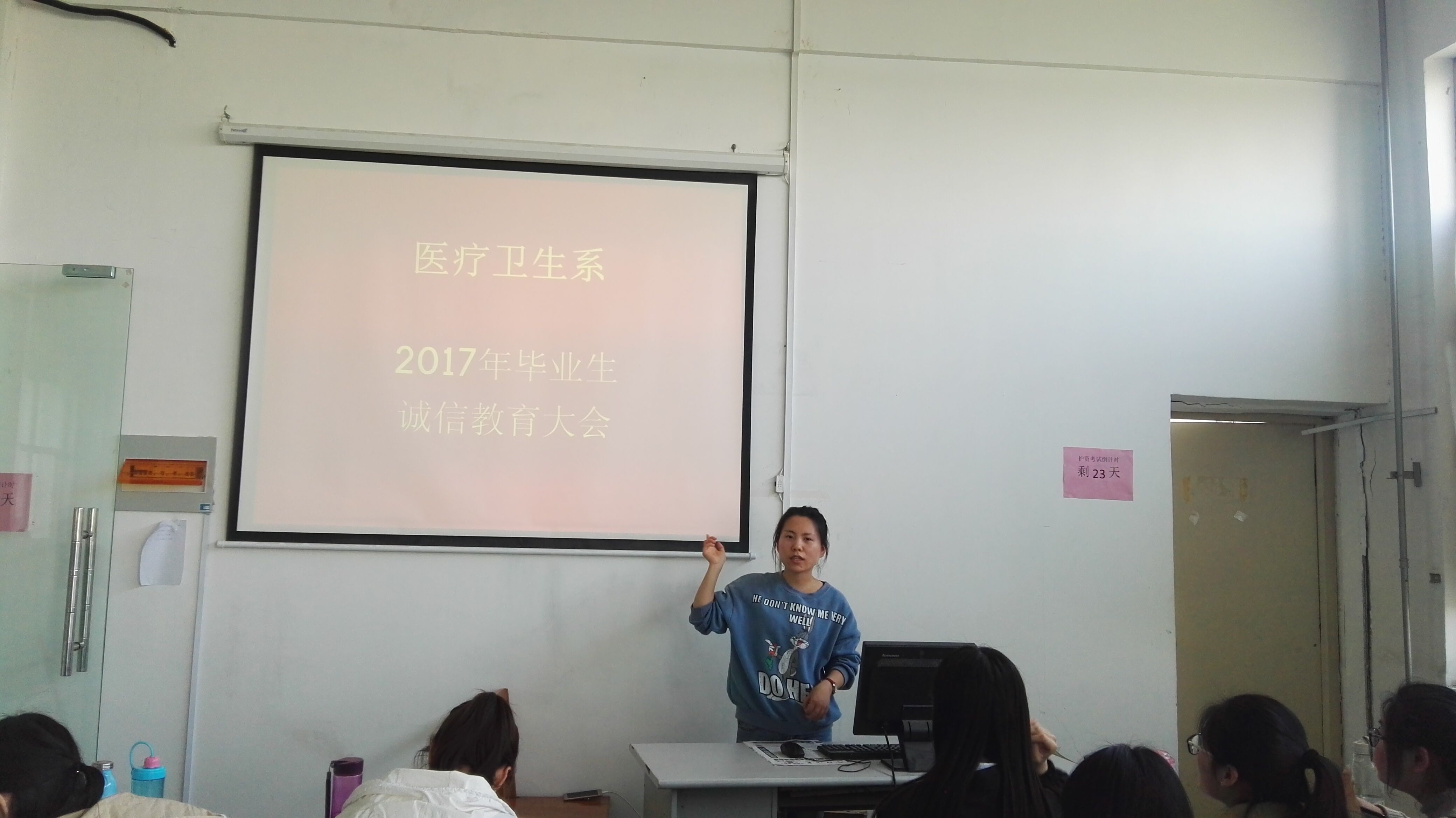 4月13日下午14:00,医疗卫生系在实训3号楼召开2017届毕业生诚信教育大会,2017届贷款毕业生及毕业班辅导员参加了会议。